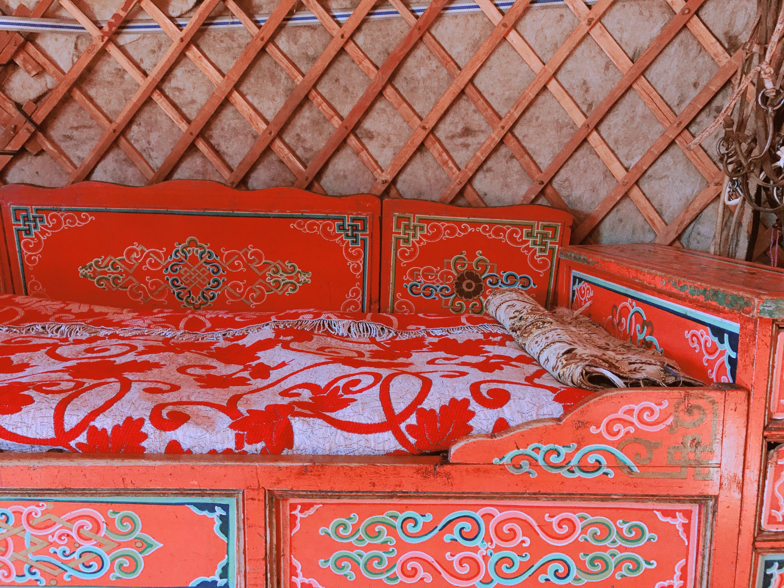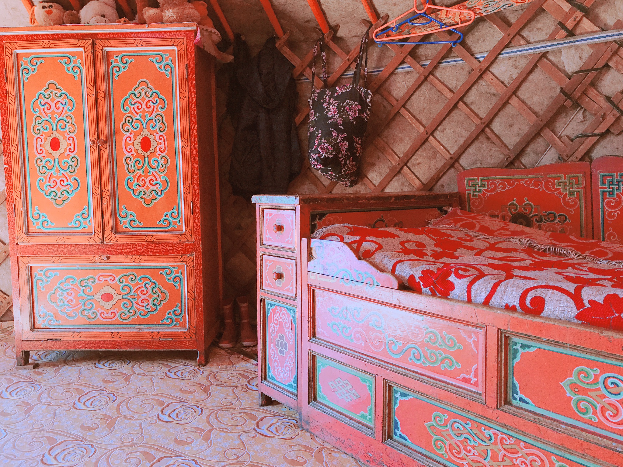 実際の遊牧民の方のゲルは、ゲル自体も家具も、年期が入っていてかっこいいです。