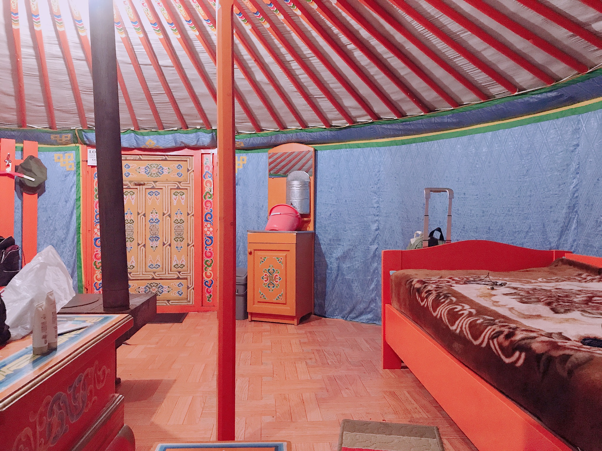 …まあ実際にはツーリスト向けのゲルなので、遊牧民の方のとはだいぶ違います。全体的に新しくてピカピカな感じがしますが、それもその筈、毎年夏が終わったら解体して翌年の観光シーズンにまたセットするそうです。